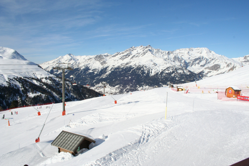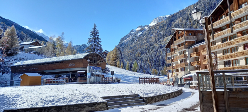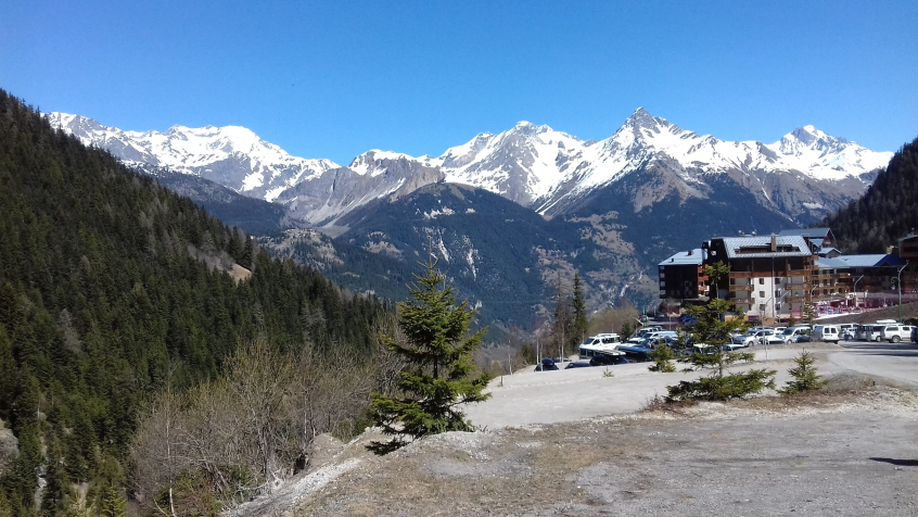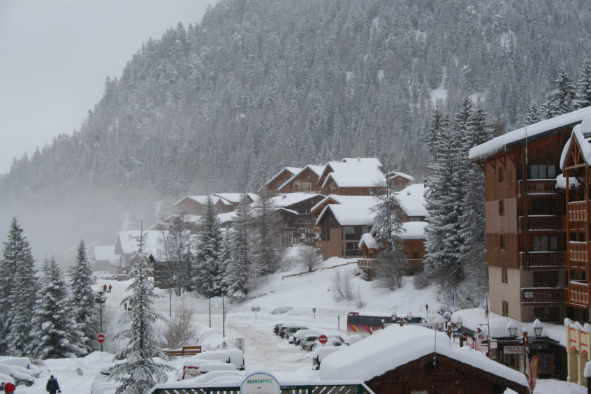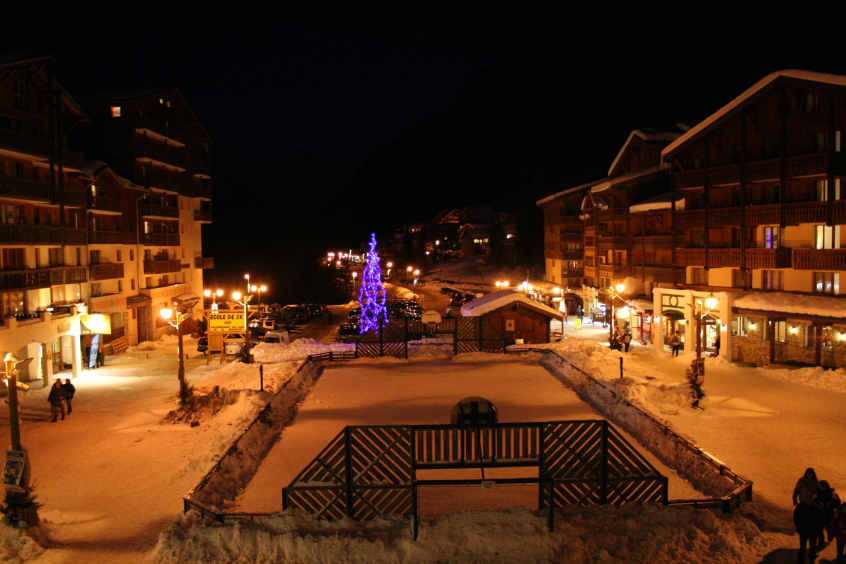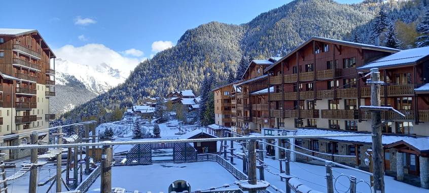 Balcon avec vue sur la place des Bergers et le massif de la Vanoise.
